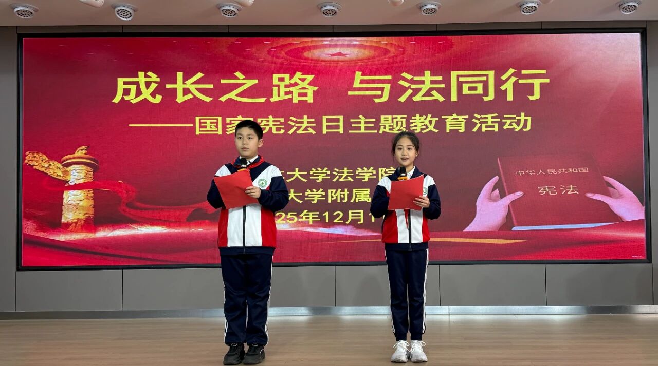 为在少年儿童心中播撒尊法、学法、守法、用法的种子,深植法治精神,让法律成为其成长路上的忠实伙伴与坚实保障,在第十二个国家宪法日到来之际,吉林大学附属小学与吉林大学法学院联合开展了“成长之路 与法同行”主题教育活动。